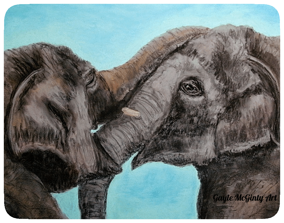 The photo was the perfect reference. The soft, airy quality of the original blue sky and the gentle grey tones of the elephants translated beautifully into the rich, velvety texture of pastel on canvas board. The resulting painting, which I titled “Gentle Giants,” became a tribute not just to the elephants’ profound bond, but also to that quiet afternoon where inspiration was found entirely by chance.